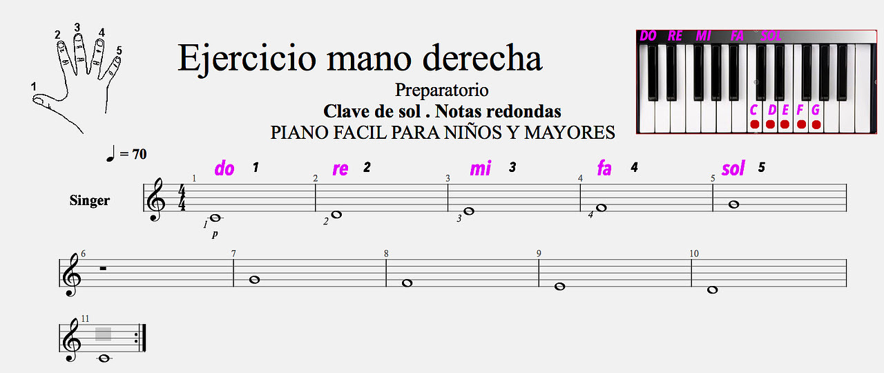 EJERCICIO mano derecha. Principiantes.. Relajar la mano y los dedos. En el video se expica donde están las notas en el piano.